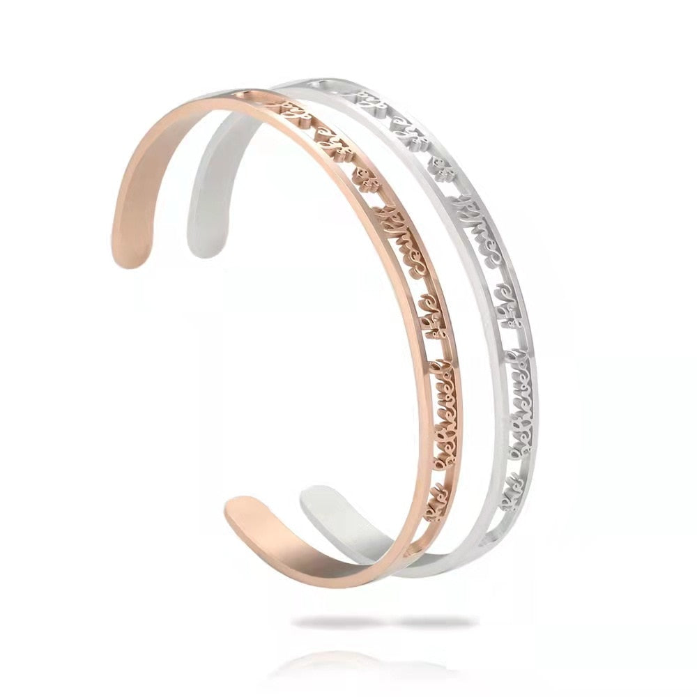 Brazalete personalizado con letra hueca de acero inoxidable, moderno, personalizado, con apertura en forma de C, ajustable, regalo