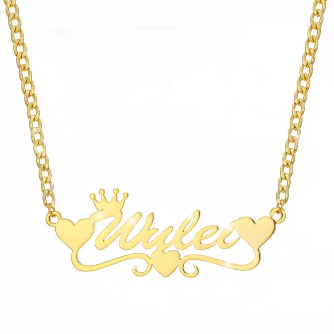 Collar con nombre personalizado de acero inoxidable con placa de identificación de corazón de oro, collar de cadena cubana