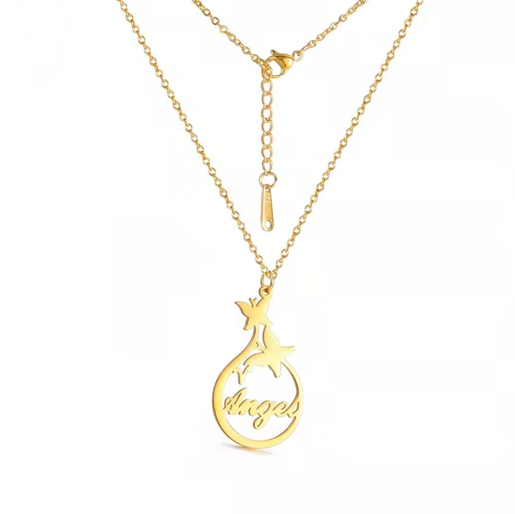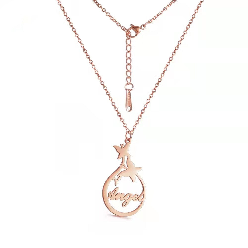Collar con nombre personalizado de acero inoxidable, sencillo y moderno, con colgante de mariposas.