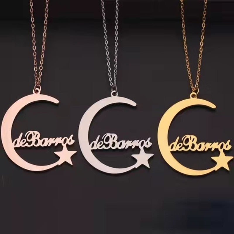 Collar con nombre personalizado de acero inoxidable con personalidad, nombre en inglés, estrella y luna.