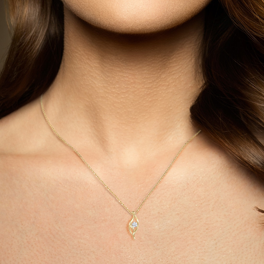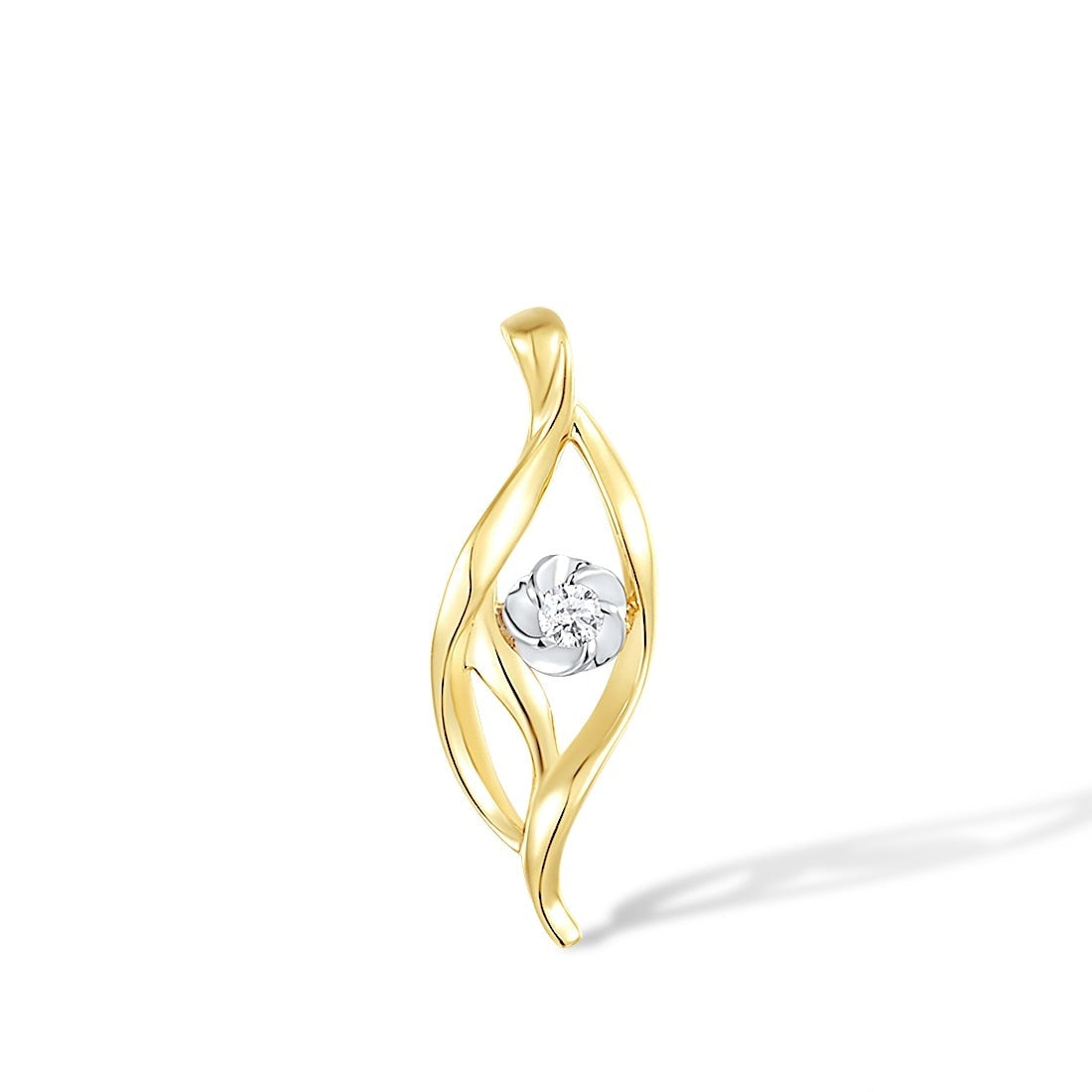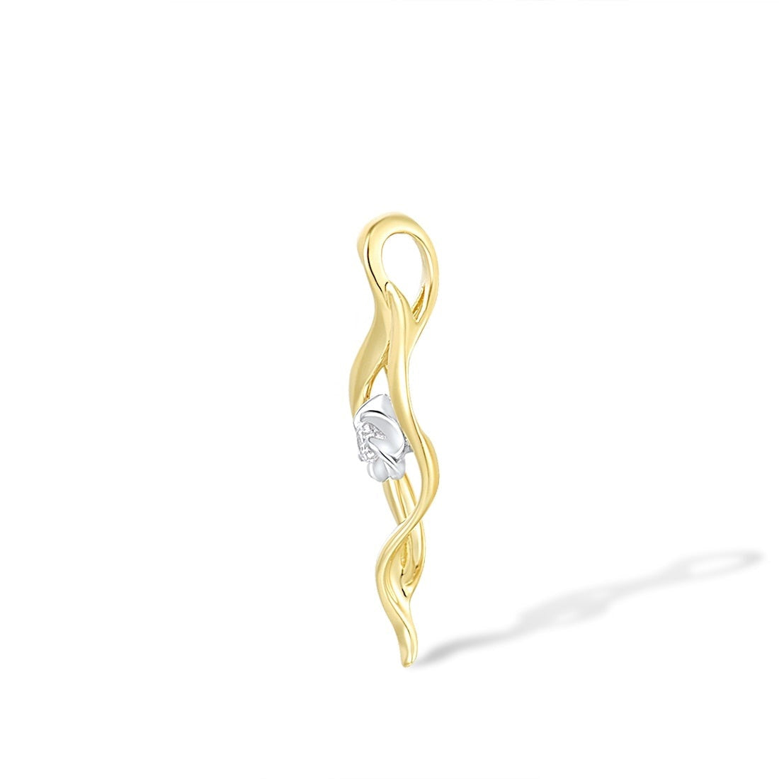 18K 750 Two-Tone Gold Pendant Sparkling Diamond Leaf Flower Pendant