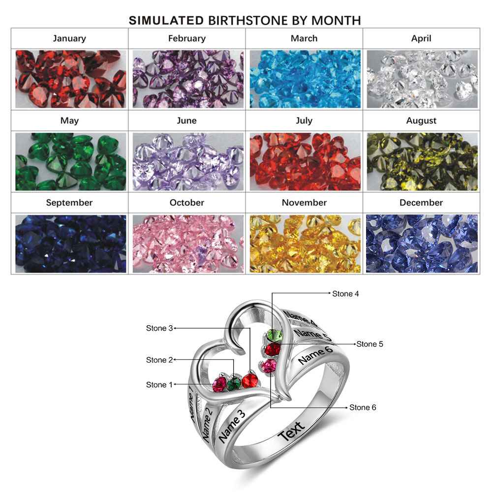 925 Sterling Silver Birthstone Engrave Name Engagement Ring