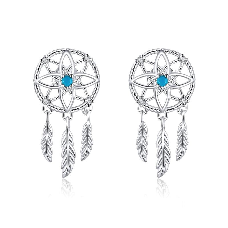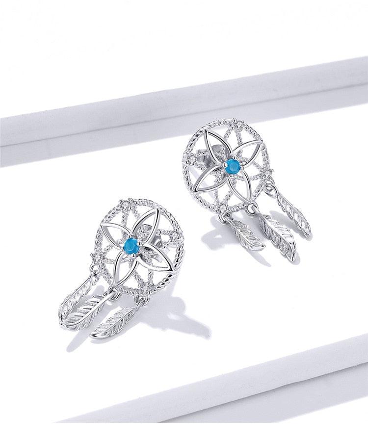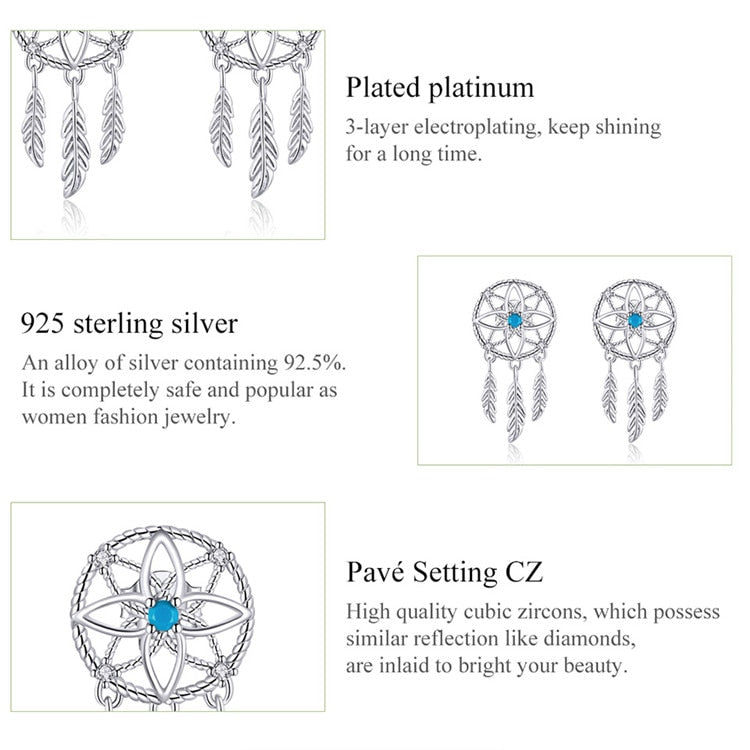 925 Sterling Silver Dream Catcher Dangle Earrings