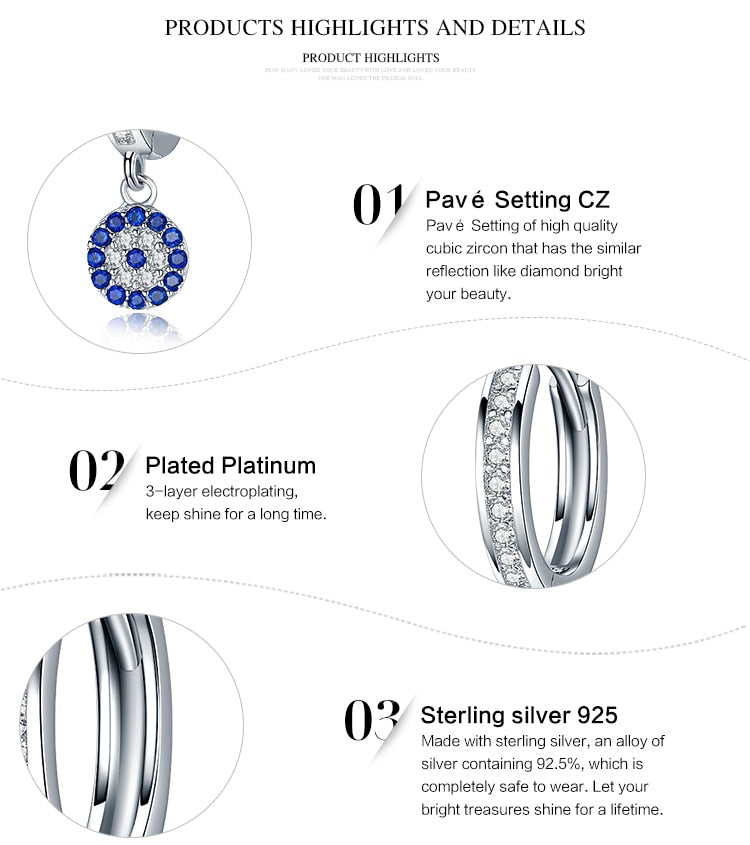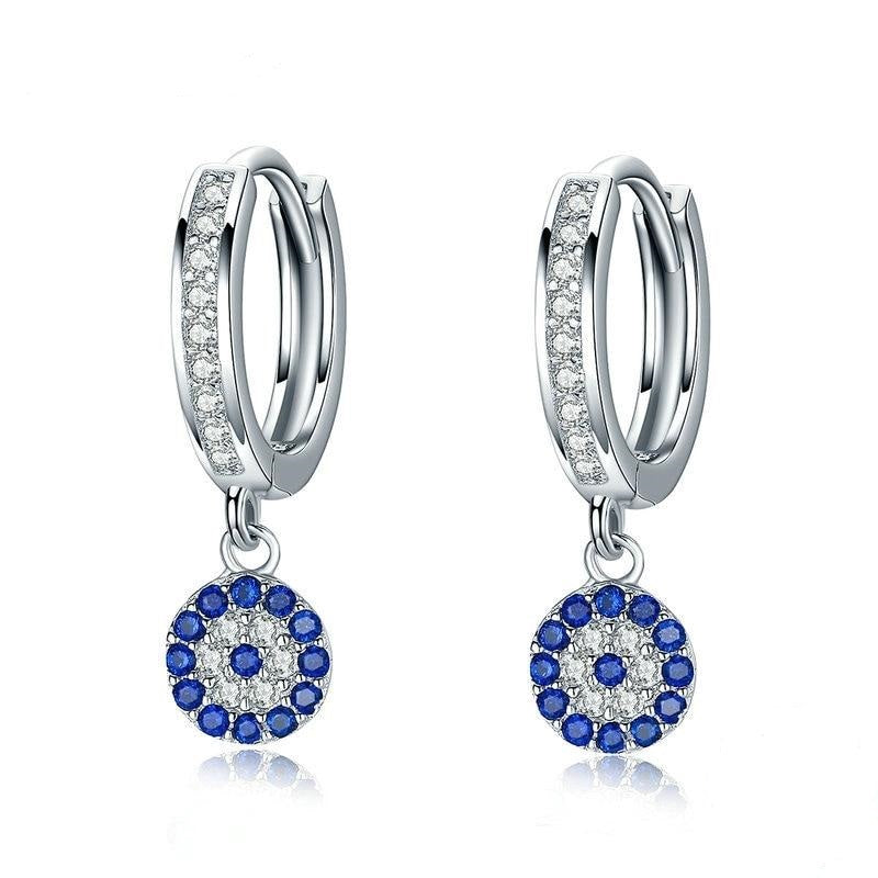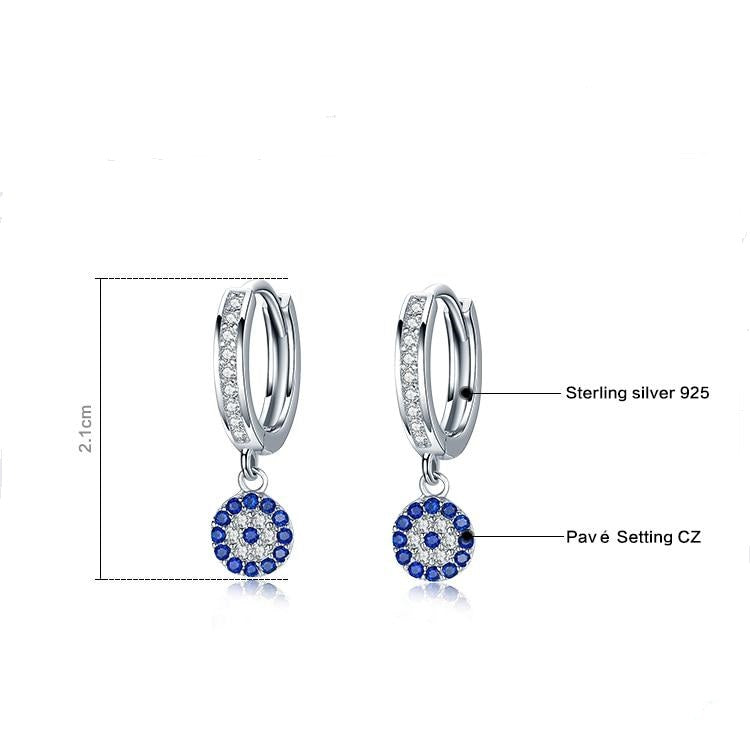 925 Sterling Silver Round Blue Cubic Zircon Crystal Drop Earrings