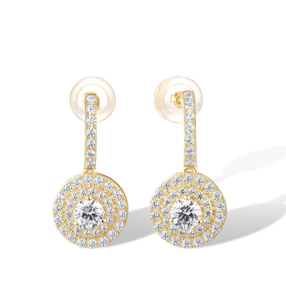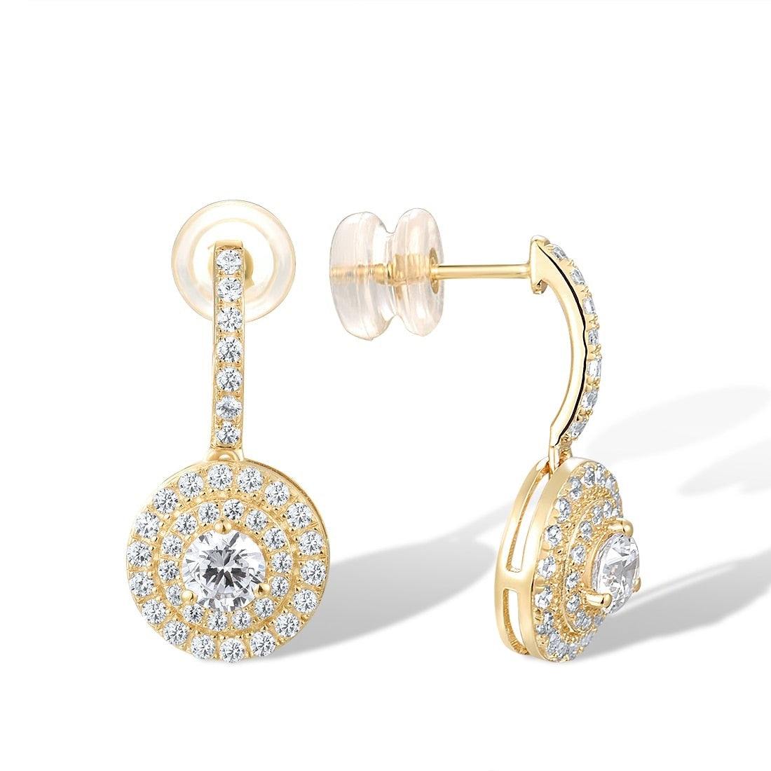 9K 375 Yellow Gold Earrings Sparkling White Cubic Zirconia Round Drop Earrings