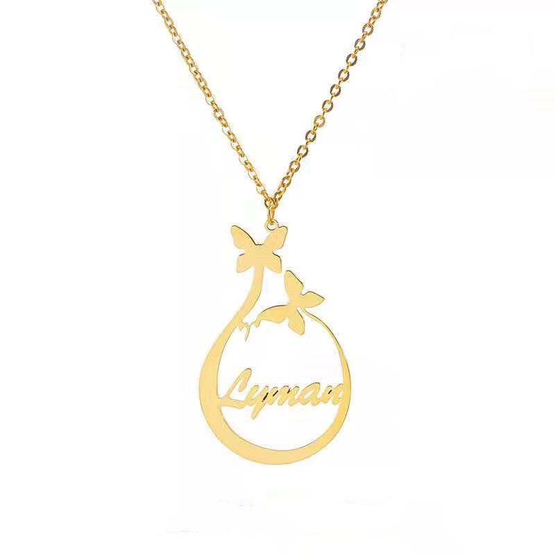 Custom Name Necklace Personalized Butterfly Necklace Stainless Steel Nameplate Pendant Necklace