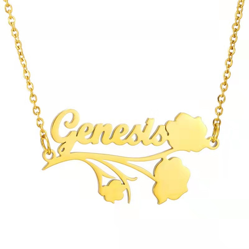 Custom Name Necklace Stainless Steel Simple Fashion Personalized Name With Rose Flower Pendant Necklace