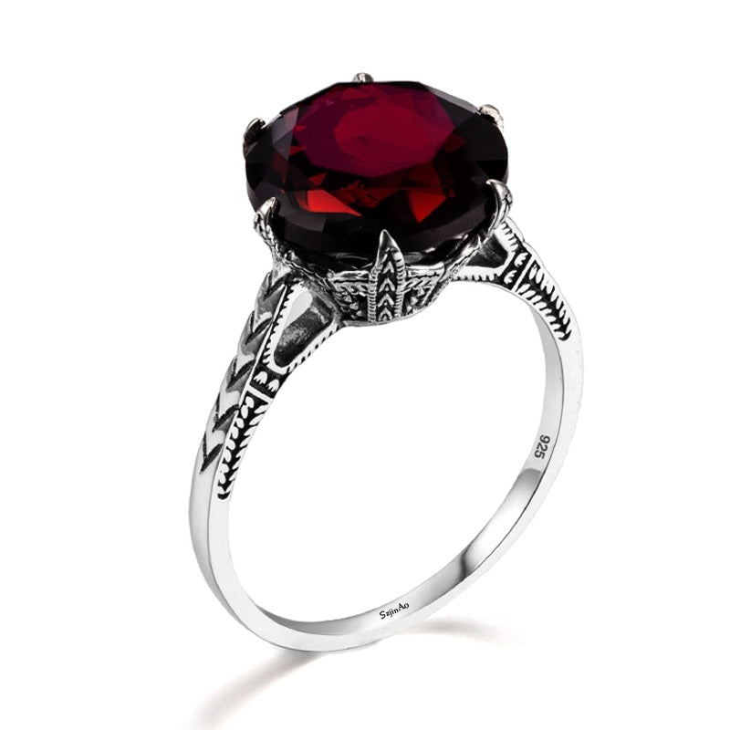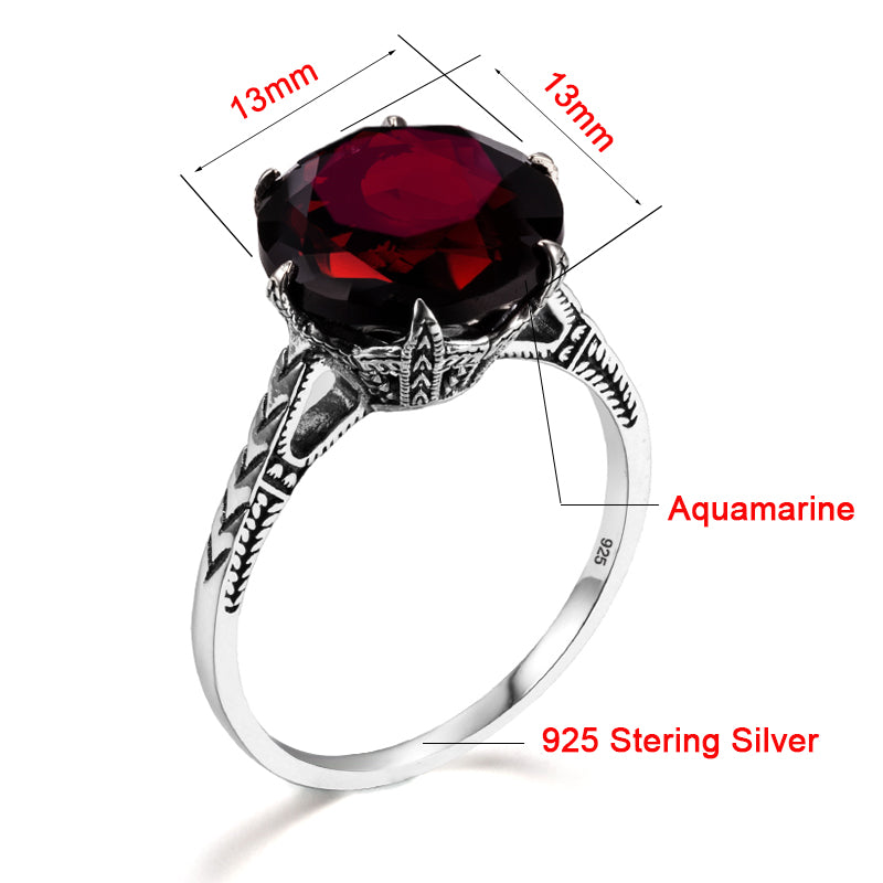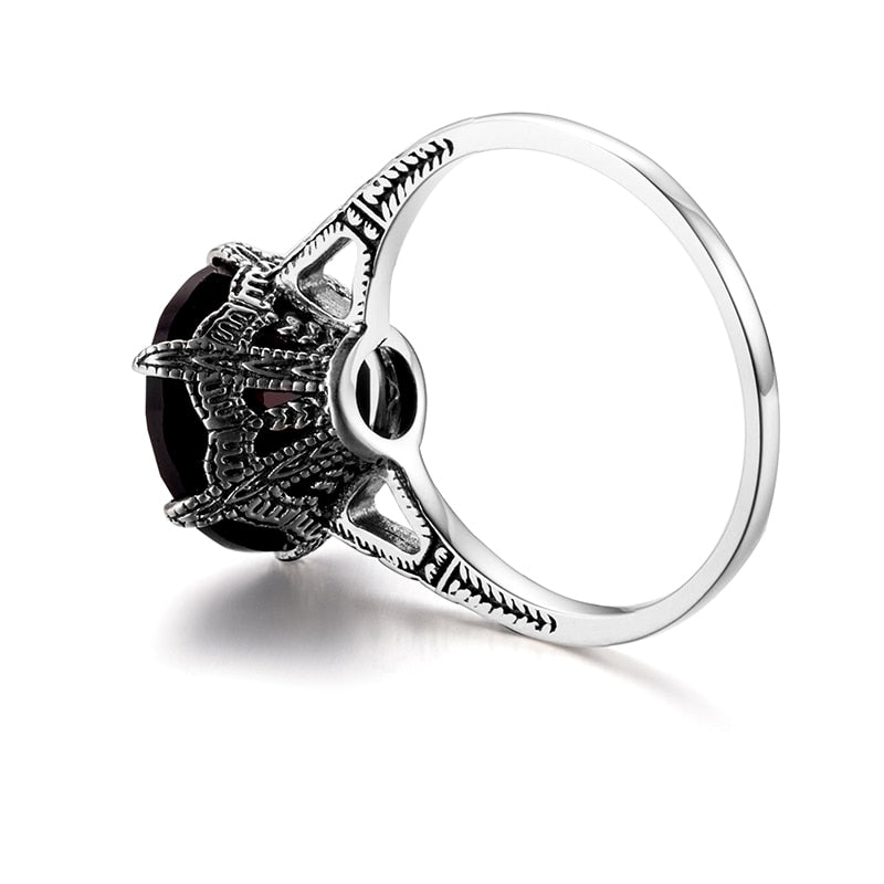 Dark Red Garnet 925 Sterling Silver Flower Charms Engagement Ring