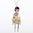 Doll Necklace Trendy Long Chain Acrylic Alloy Red Flower Figure Fashion Jewelry
