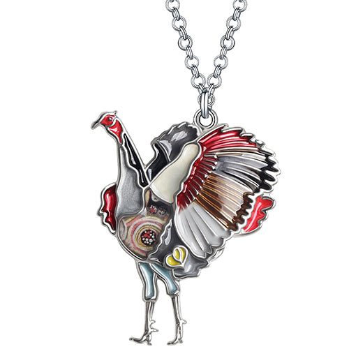 Enamel Alloy Floral Thanksgiving Sweet Chicken Hen Turkey Necklace