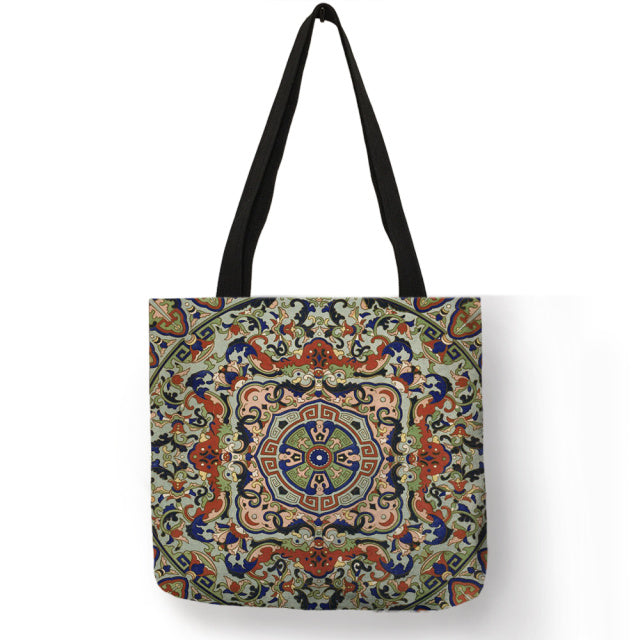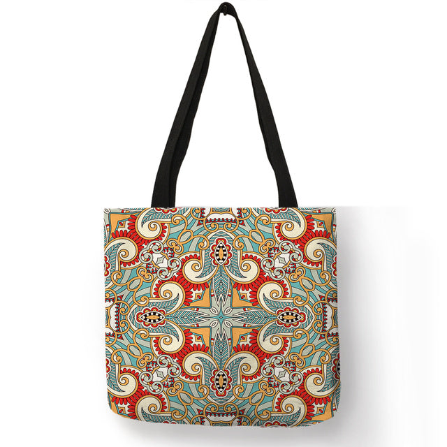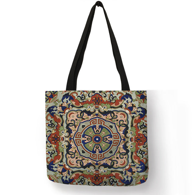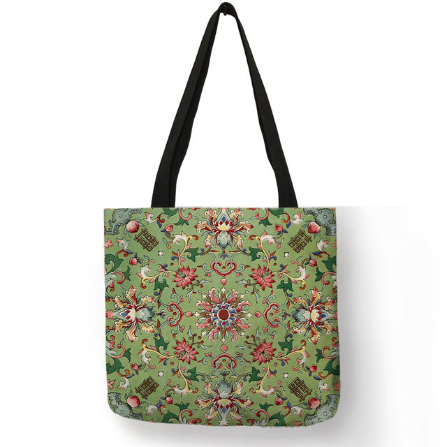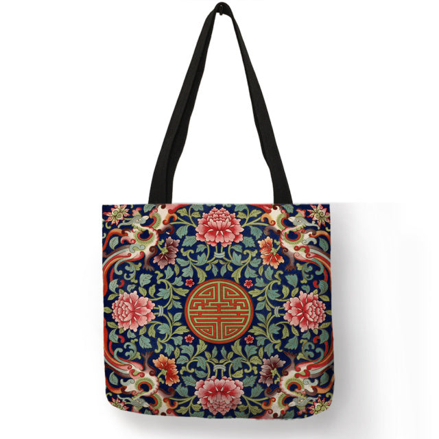 Exquisite Colorful Floral Pattern Print Shopping Tote Bag