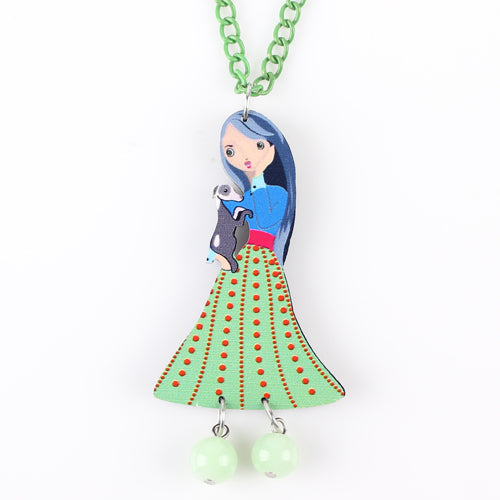 Colorful Figure Acrylic Fairy Wings Long Chain Necklace