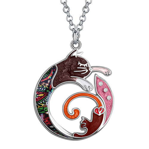 Mothers Day Enamel Alloy Floral Cat Kitten Necklace