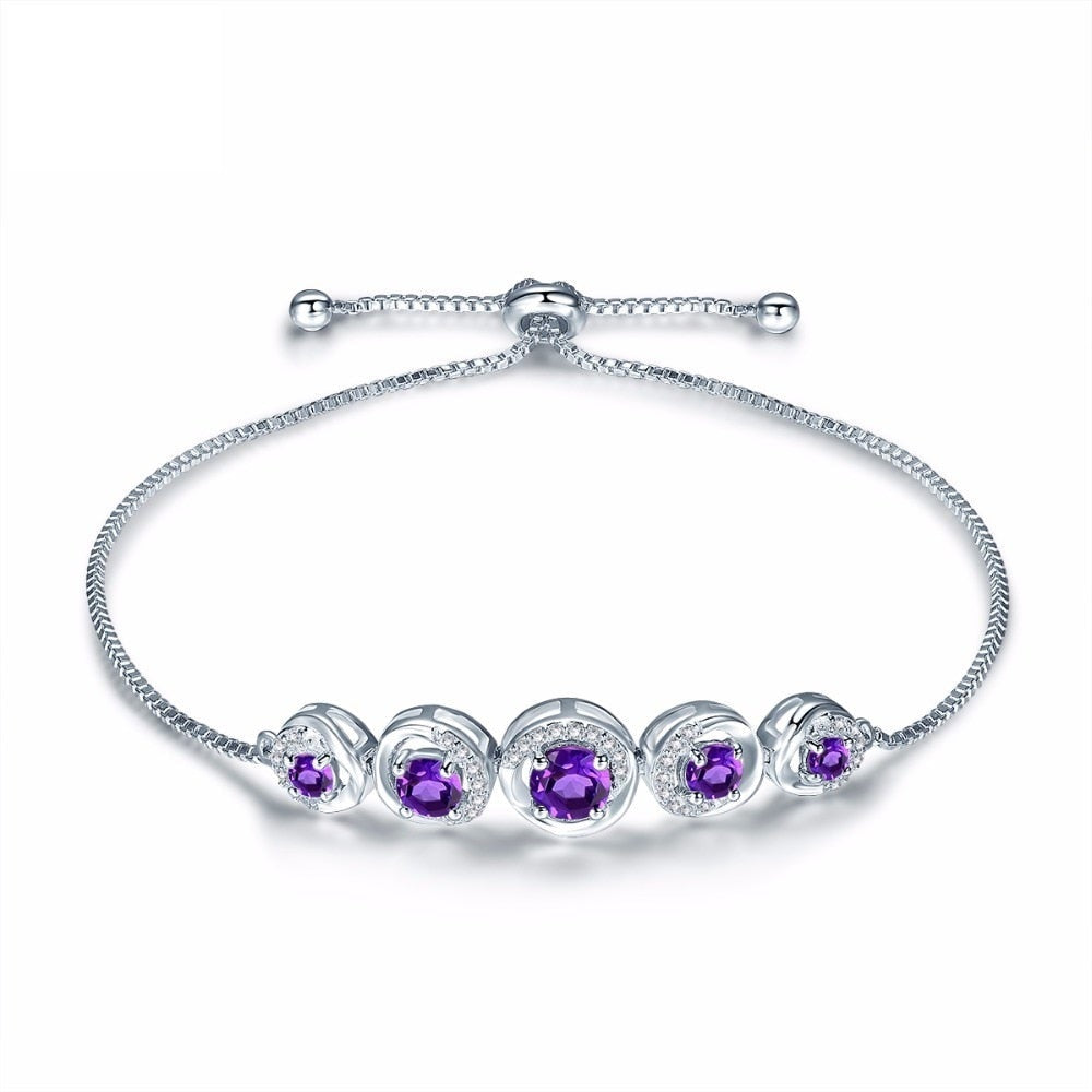 Natural Gemstone African Amethyst 925 Sterling Silver Adjustable Bracelet