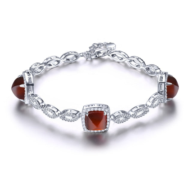 Naturao Spessitite Garnet Cabochon Sugar-loaf Silver Bracelet