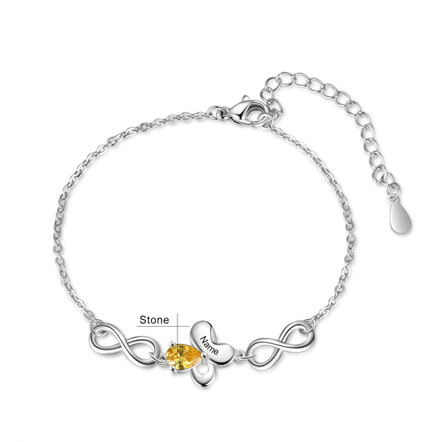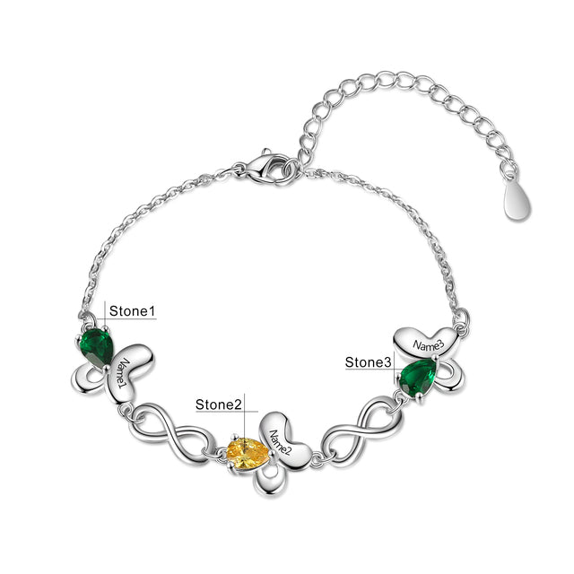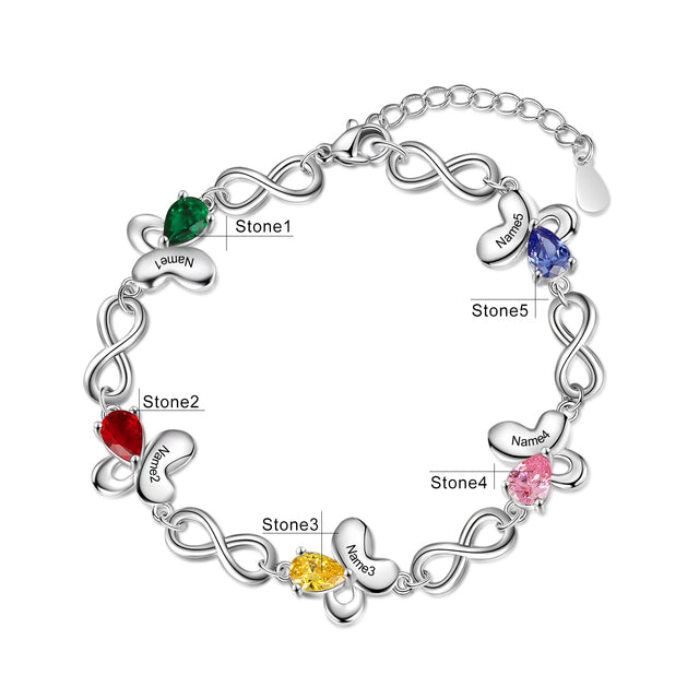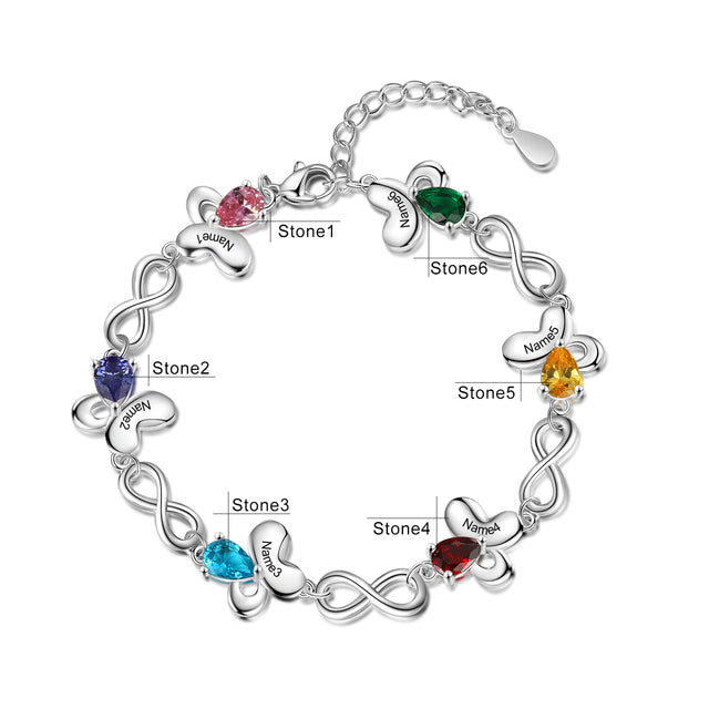 Personalized Butterfly Inlaid Birthstone Infinity Love Customized 1-6 Name Engraved Bracelet