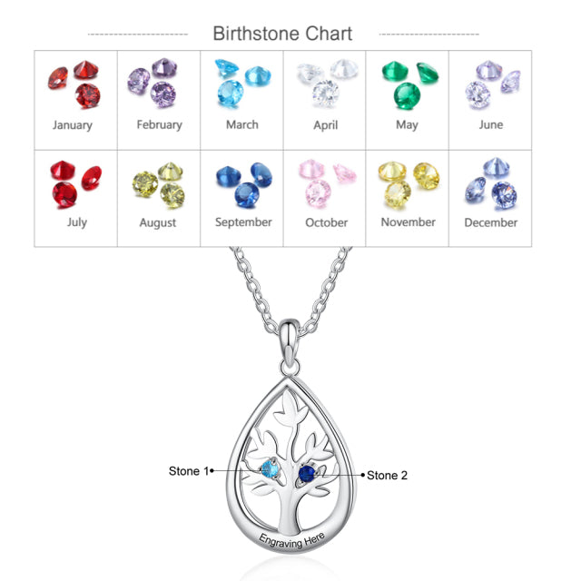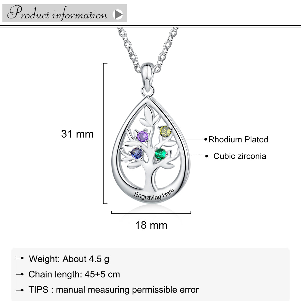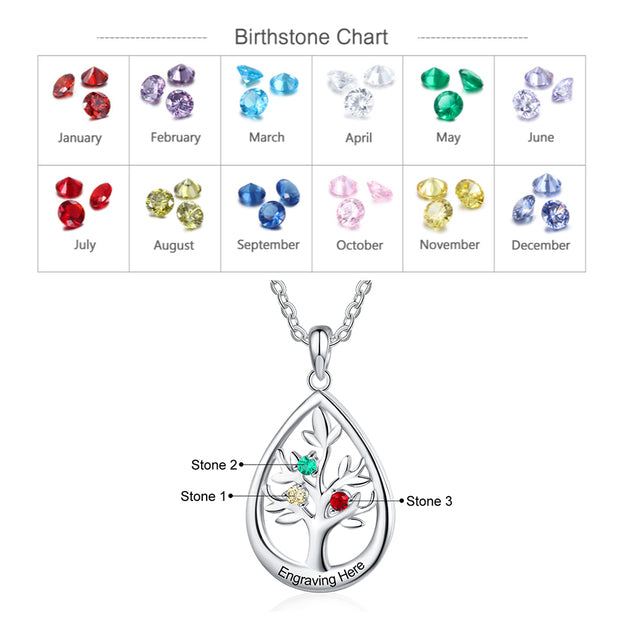 Personalized Tree of Life Necklace with Birthstone Customized Engraving Water Drop Pendant Jewelry