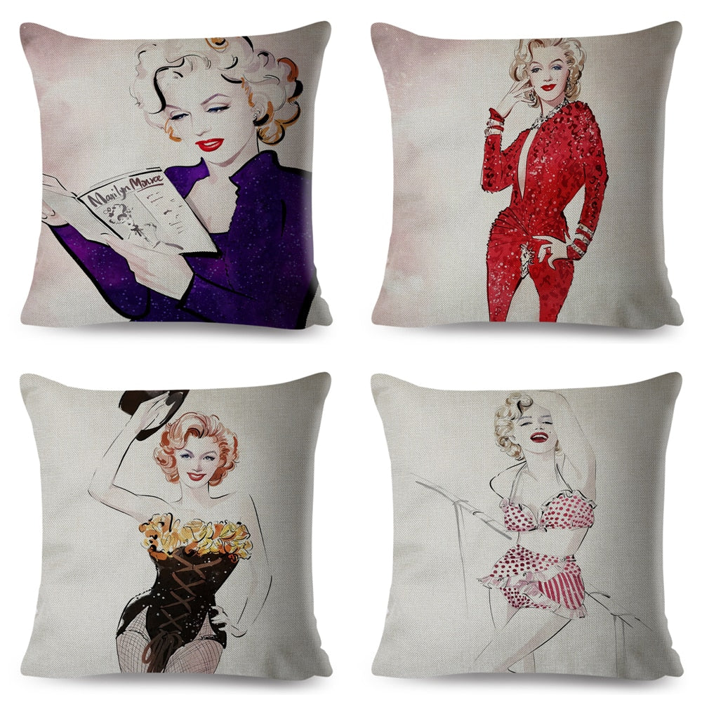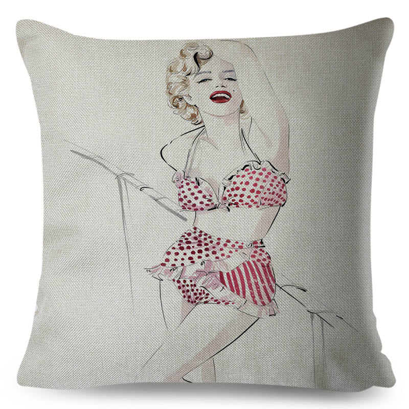 Simple Colorful Cartoon Sexy Girl Super Star Pillow Case Polyester Decor Cushion Cover