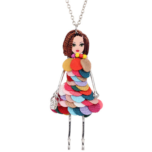 Statement Alloy Doll Necklace Dress Handmade French Cloth Doll Pendant Fashion Jewelry