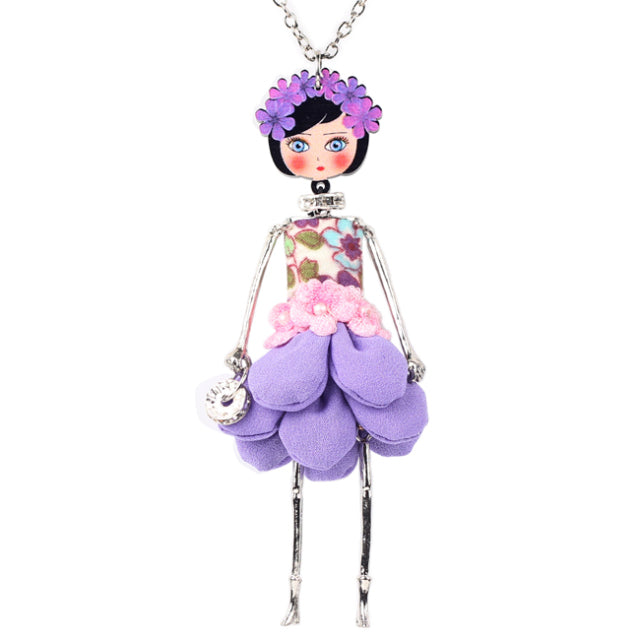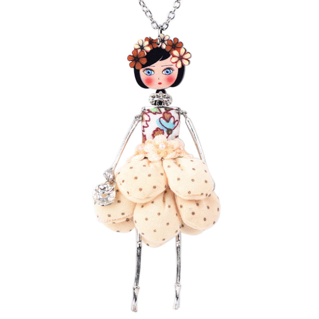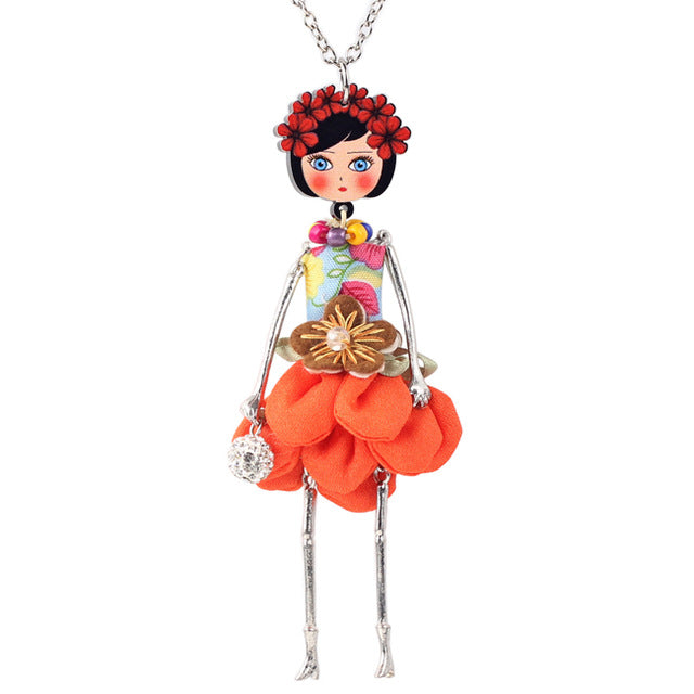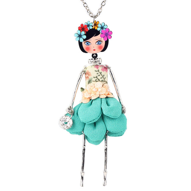 Statement Flower Doll Necklace Dress Handmade French Doll Pendant News Alloy Flower Fashion Jewelry