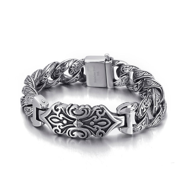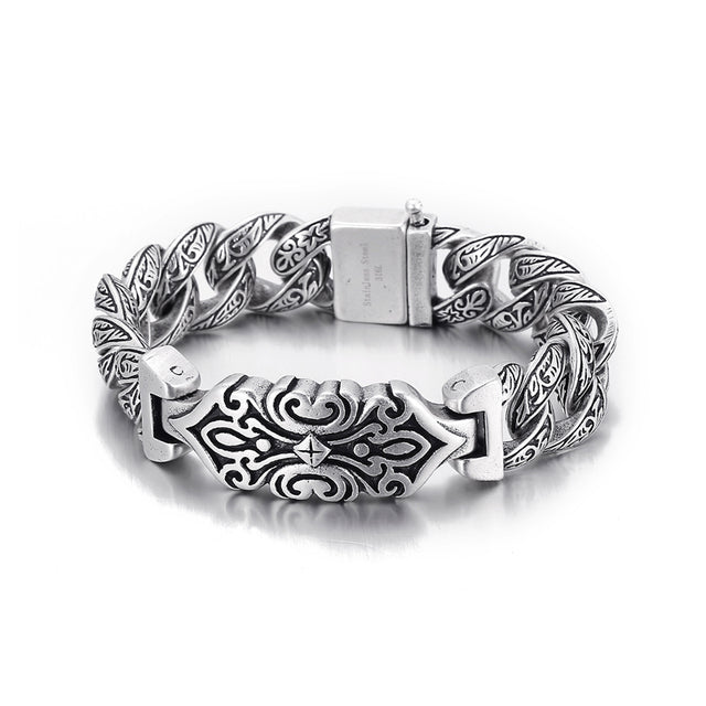 Totem Pattern Vintage Cuban Bracelet, a bold and unique piece of jewelry designed for those who appreciate a striking look. This bracelet features a totem pattern with a vintage Cuban style, making it a standout accessory for any occasion.