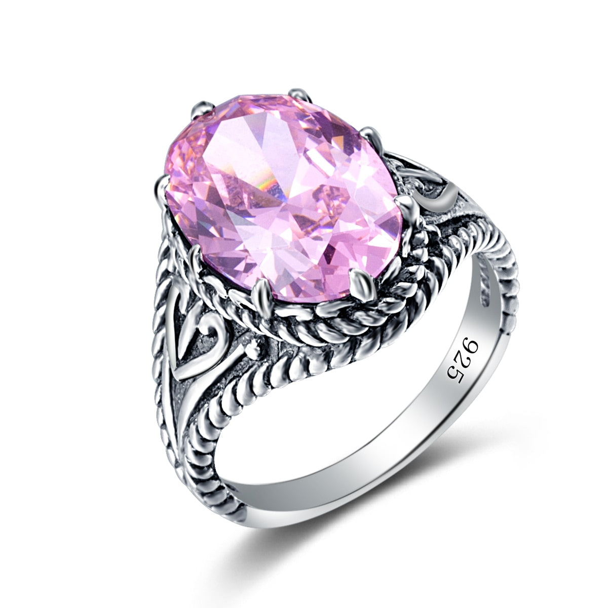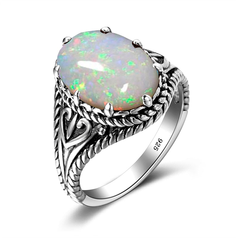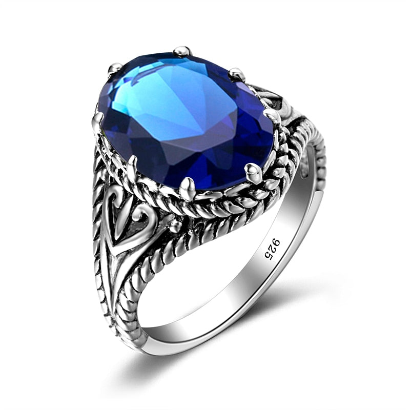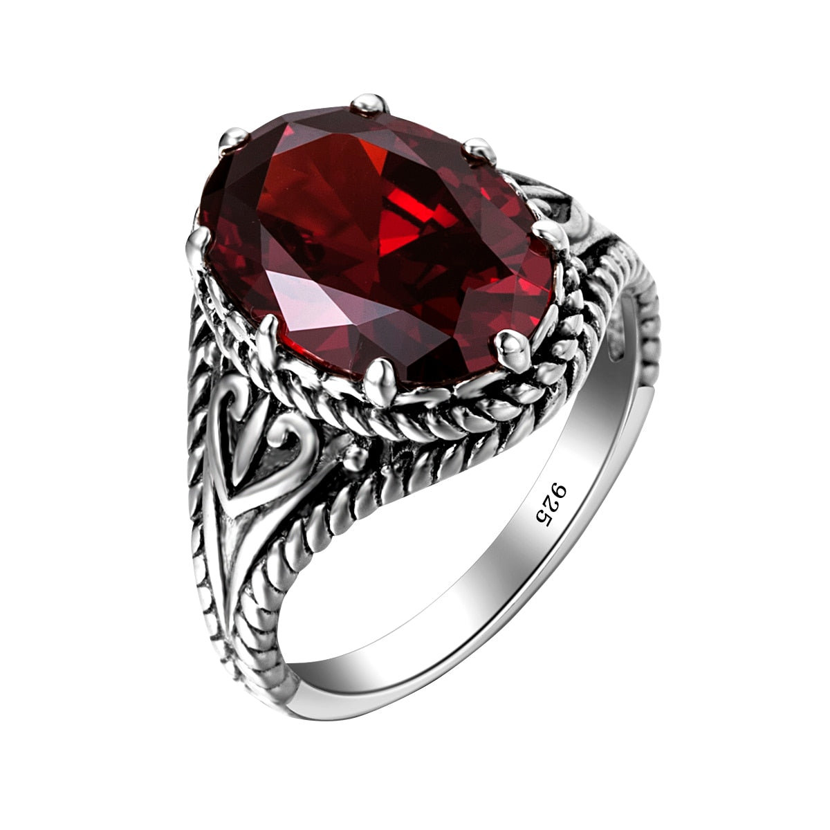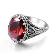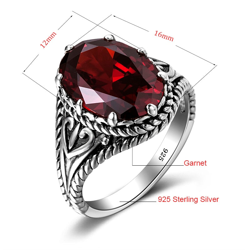 Vintage Red Garnet Ring Oval Gemstone 925 Sterling Silver Ring